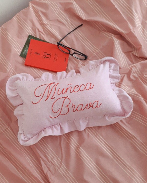La funda es desmontable con pestaña en el lado trasero, para proteger el bordado y el relleno interno.