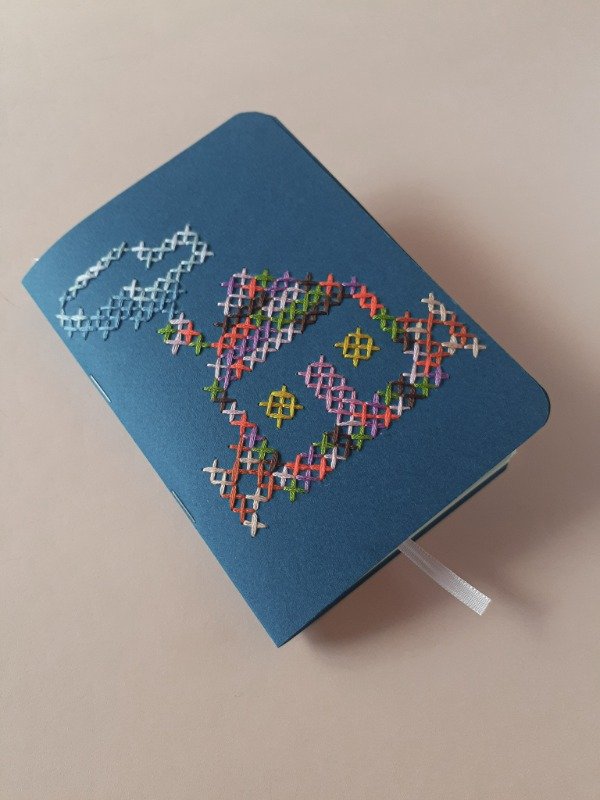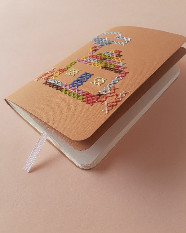 Viene con doble tapa para que puedas escribir sin que interfiera el relieve del bordado