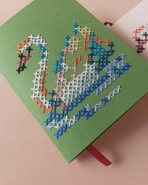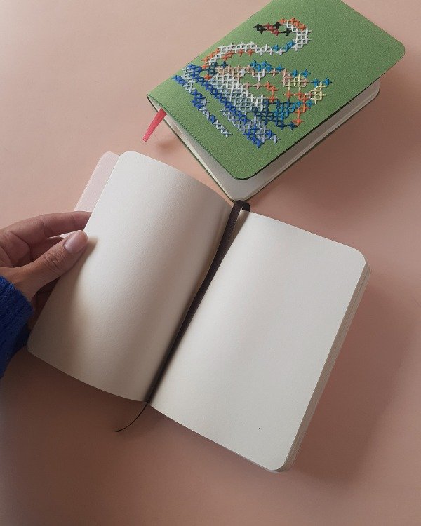 Viene con doble tapa para que puedas escribir sin que interfiera el relieve del bordado