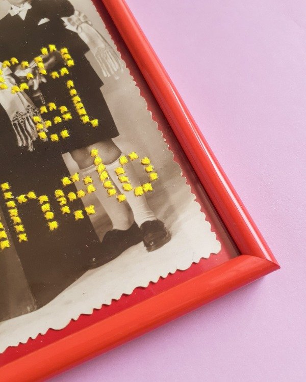 Bordada a mano.