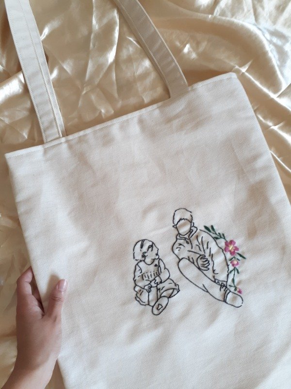 ⭐Totes con bordado personalizado de siluetas de personas. El bordado se realiza a partir de una imágen (en la mejor calidad posible), se realiza un boceto para su aprobación (el boceto se manda via mail dentro de las 24/48 hs impactado el pago). Una vez aprobado el boceto, se comienza con el bordado.