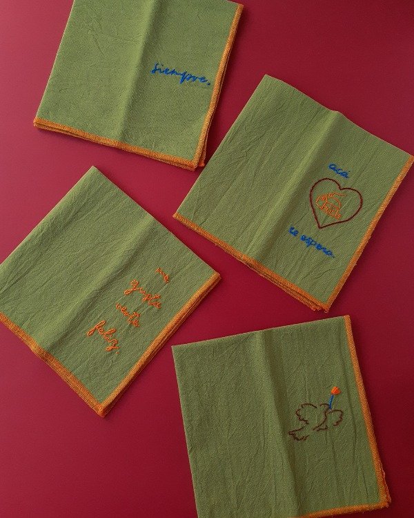 Set Encuentro de 2 servilletas: Si seleccionas esta opción podes elegir las dos que más te gusten del set de 4 (lo aclaras una vez que realizas la compra). No se puede elegir el mismo modelo x2.